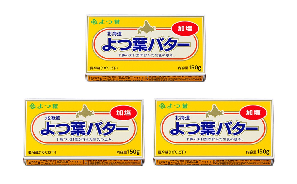よつ葉 加塩 バター 150g×3個 北海道 乳製品 国産バター 有塩バター カルトンバター 冷蔵 [007-K80]