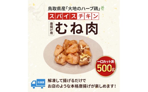 【鳥取県産 大地のハーブ鶏】 スパイスチキン 唐揚げ 500g KC232 むね肉 一口カット 鶏肉 チキン 鳥取県 倉吉市