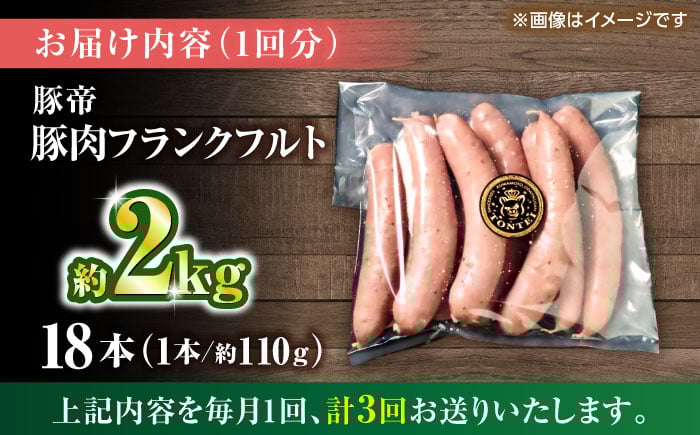 フランクフルト【全3回定期便】豚帝 約2kg ふらんくふると ソーセージ そーせーじ 豚肉 大容量 おつまみ【KRAZY MEAT(小田畜産)】 [ZCP181]