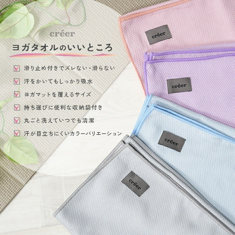 ヨガタオル 滑り止め 滑らない 収納袋付き【カラー選択可】〈 ライズクリエイション アットライズ 〉 ヨガ ホットヨガ タオル ヨガマット 床 持ち運び 吸水 吸汗 折りたたみ 折り畳み ストレッチ フィットネス トレーニング 洗える 洗濯 携帯 ヨガラグ 奈良県 奈良市