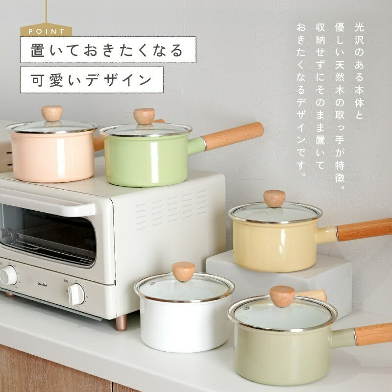 - ホーロー鍋 ミルクパン ホーロー 14cm 蓋付き 【カラー選択】〈 アットライズ 〉 IH ガス 鍋 1人用 透明蓋 IH対応 小鍋 片手鍋 ソースパン 離乳食 味噌汁 調理器具 キッチン用品 ホーロー鍋 琺瑯 透明蓋 キッチン kit 奈良県 奈良市