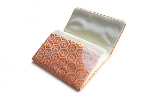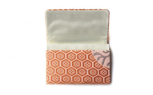 【堺町御門前 平七】有職文浮織名刺入れ(淡朱色亀甲霰地文に海松丸上文)