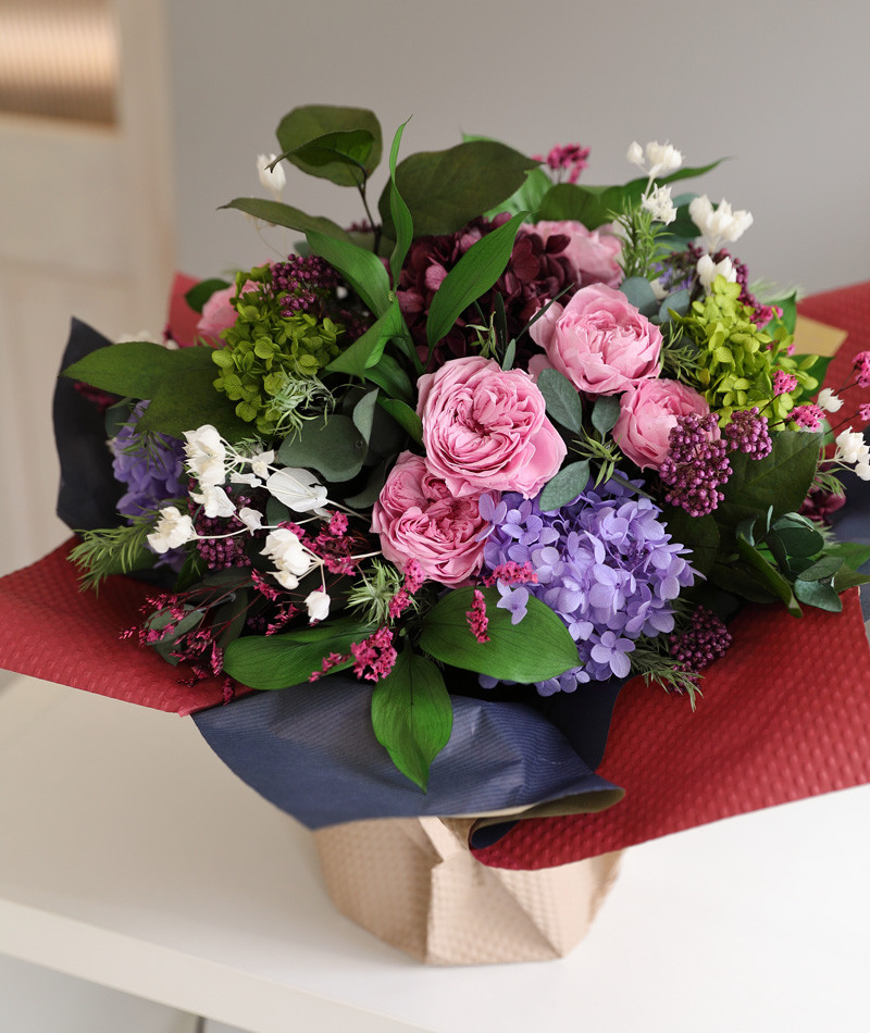 花 定期便 全12回 オシャレブーケ (初回花瓶付) 花 12ヶ月 (延命剤付) 季節の花 生花 花 定期便 ブーケ 下出生花店 飛騨高山 BB100