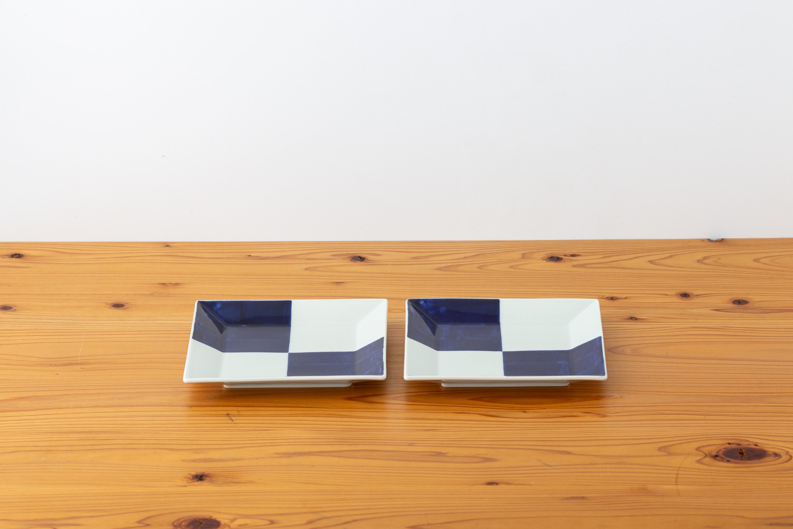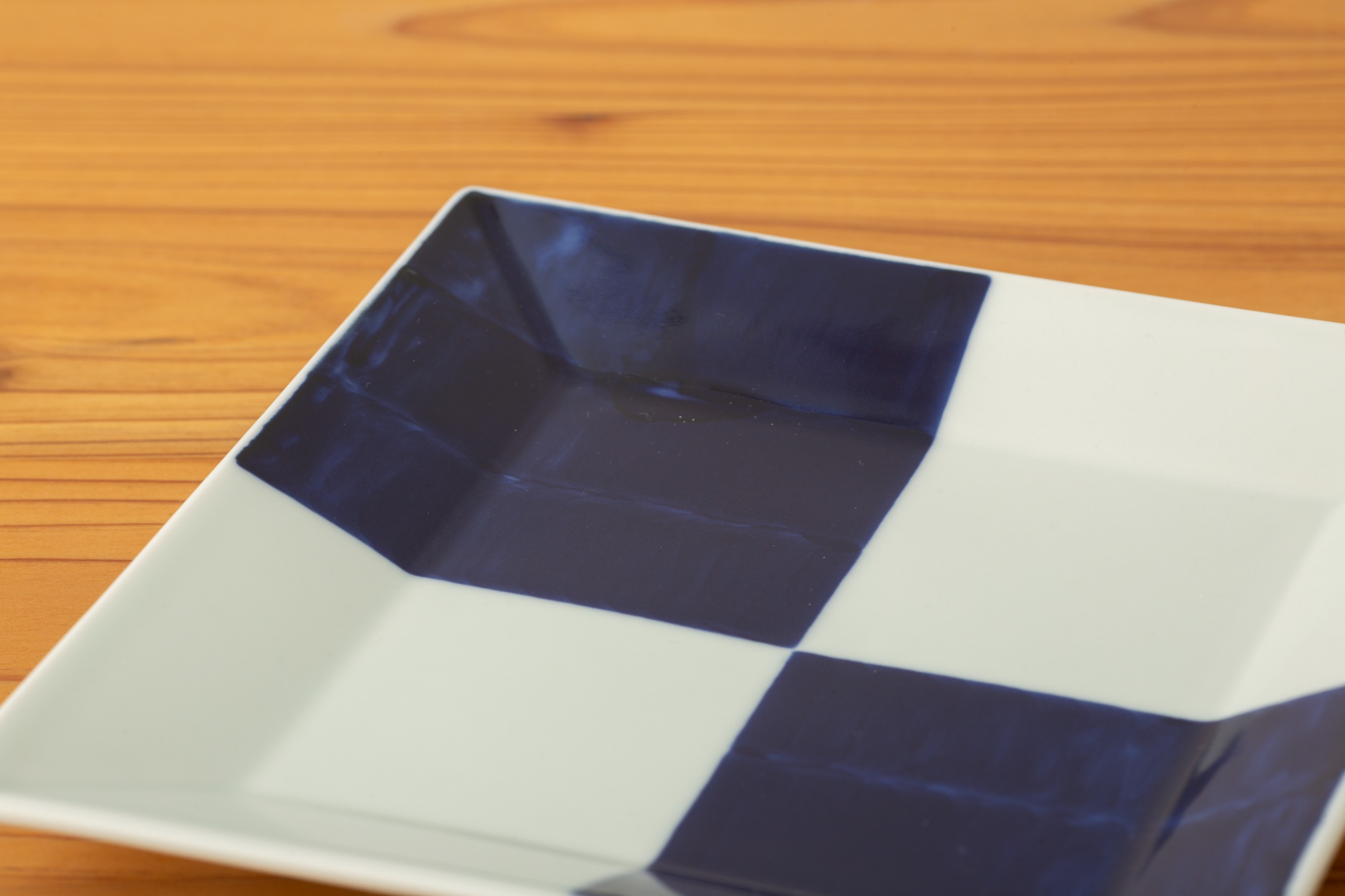 - カネアオ 有田焼 市松スクエアプレート(M)2枚セット そうた窯