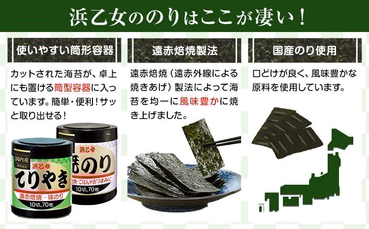 - 海苔 国産海苔使用 焼きのり(10切70枚×2個) 味のりてりやき (10切70枚×1個) 海苔 210枚 浜乙女《30日以内に出荷予定(土日祝除く)》三重県 東員町 ギフト 贈答 プレゼント 贈り物 国産 ご飯のお供 ごはんのお供 白米 おつまみ 寿司