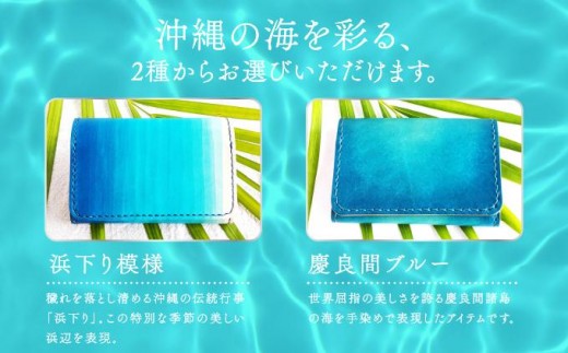 - 【選べる種類】手染めの名刺入れ(浜下り模様or慶良間ブルー) I 手染め 名刺入れ ハンドメイド 名 革 レザー シンプル 雑貨 沖縄県 南城市 ふるさと納税 おきなわ革工房有海月 -ゆみづき-