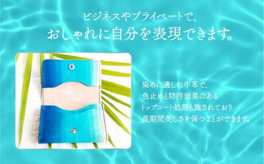 【選べる種類】手染めの名刺入れ(浜下り模様or慶良間ブルー) I 手染め 名刺入れ ハンドメイド 名 革 レザー シンプル 雑貨 沖縄県 南城市 ふるさと納税 おきなわ革工房有海月 -ゆみづき-