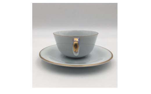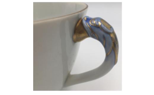白磁金彩饕餮文把手付カップ&ソーサー 有田焼花伝造