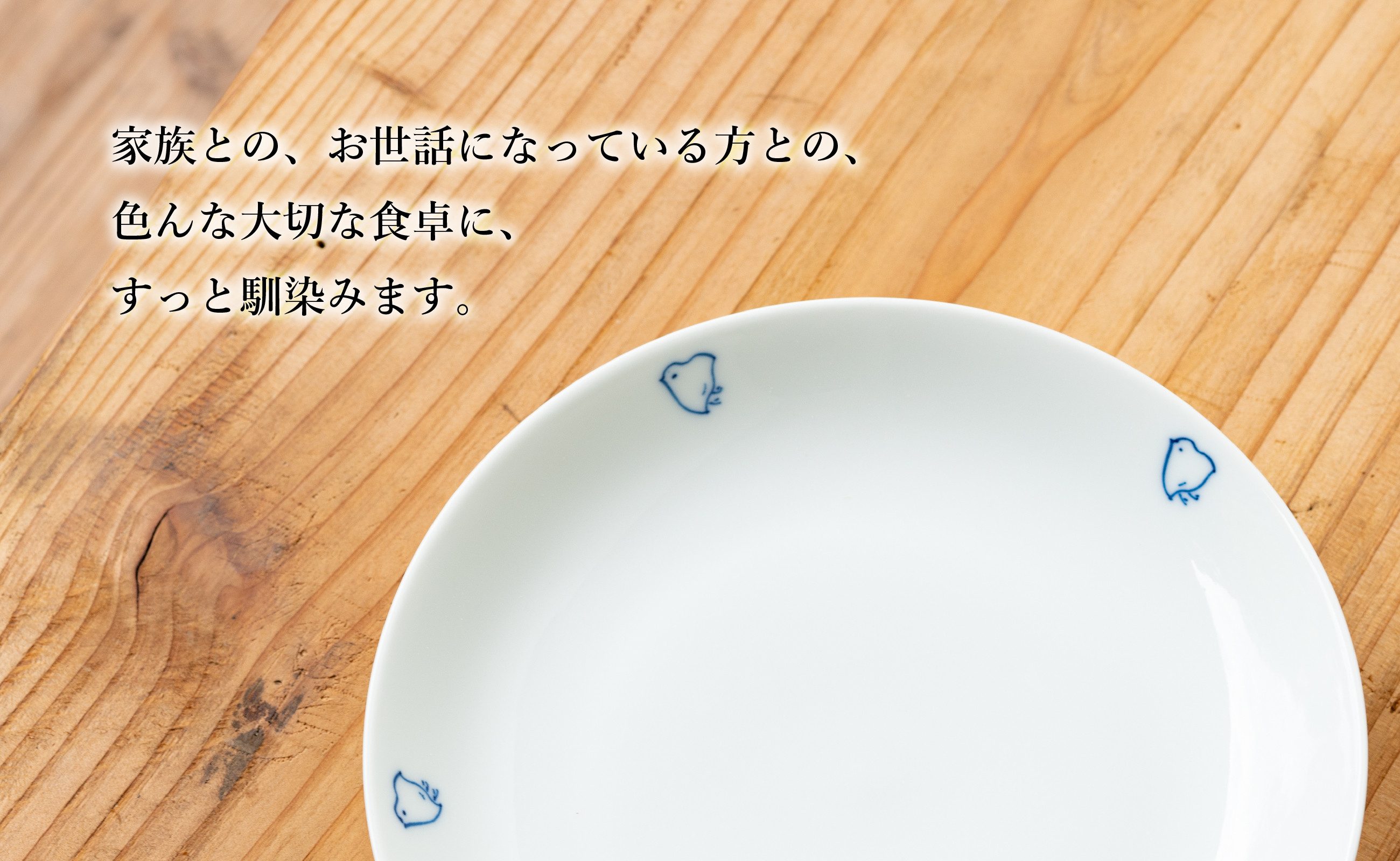- G454p 〈嘉久正窯〉千鳥 茶碗 6寸皿 計4点セット 手描き 染付 飯碗 茶碗 ケーキ皿 パン皿 盛り皿