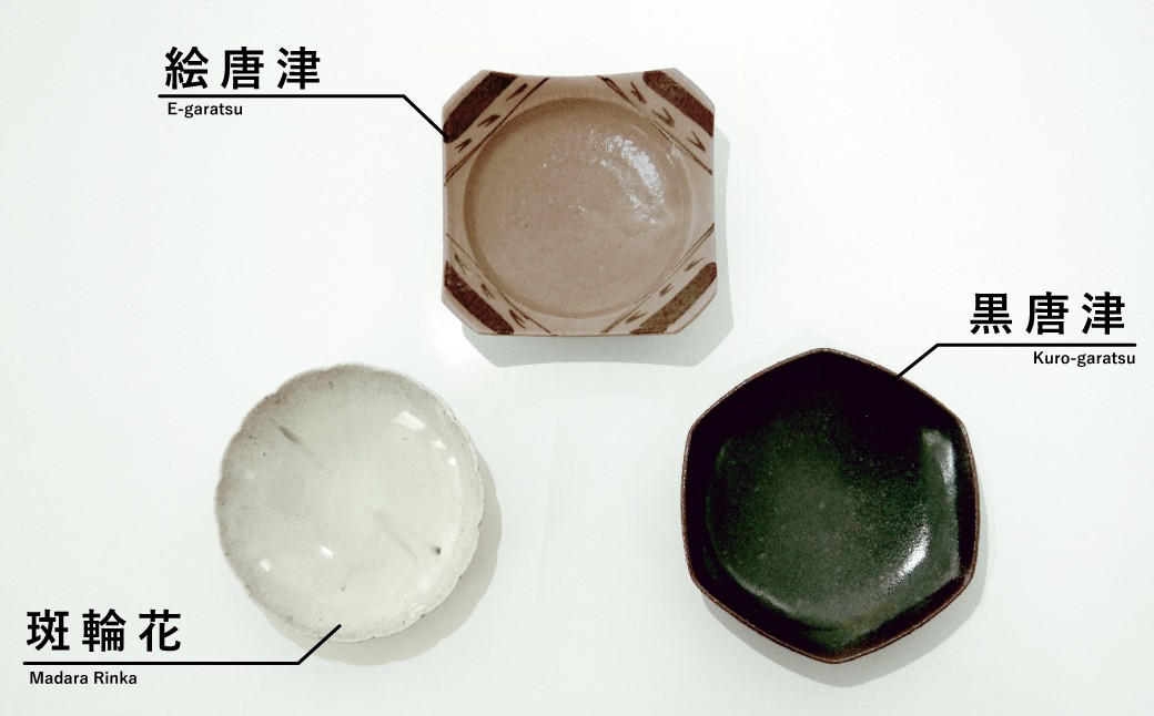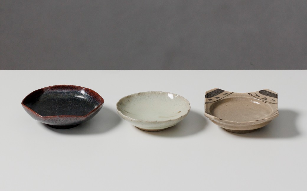 - 【セット】【村山健太郎】唐津焼/唐津小皿セットA(黒唐津、斑唐津輪花、絵唐津四方)