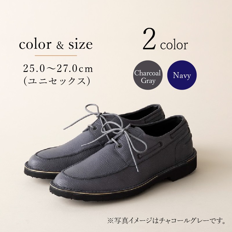 - TREE DECK(北杜市産野生鹿革のデッキシューズ) 【 チャコールグレー / ネイビー 】 25.0cm~27.0cm シューズ デッキシューズ 鹿革 メンズ レディース ユニセックス カジュアル ヌバックレザー