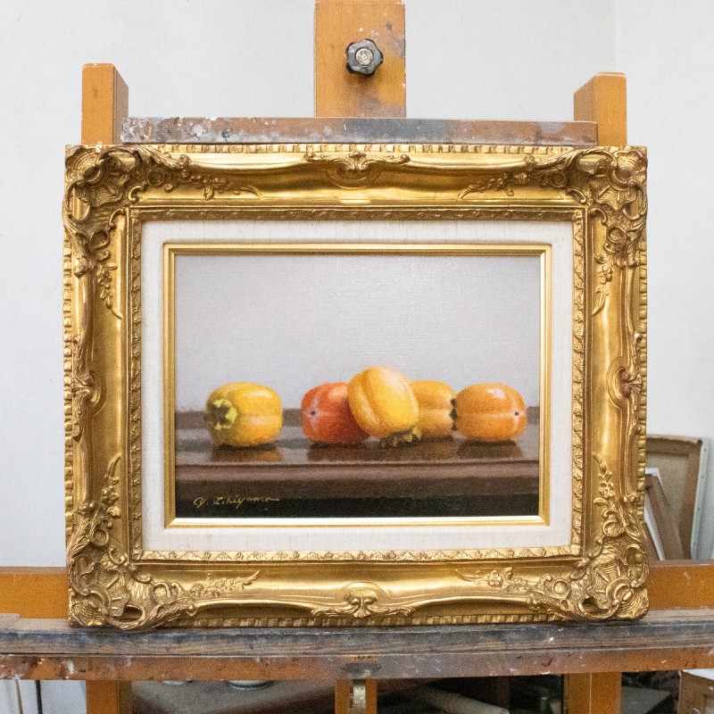 - 油彩絵画 「カキ」 石山義秀 油絵 絵画 原画 雑貨 アート インテリア 額入り 1点もの 1点物 キャンバス4号 イラスト アート作品 柿 西条柿 果物 くだもの フルーツ 下関 山口