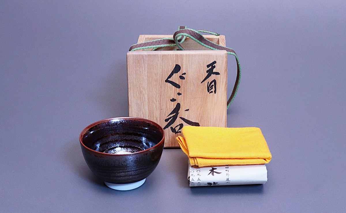 - 文化勲章受章 青木龍山作 天目渚ぐい呑【田中陶器店】有田焼 伝統工芸 限定品 美術品 A200-60