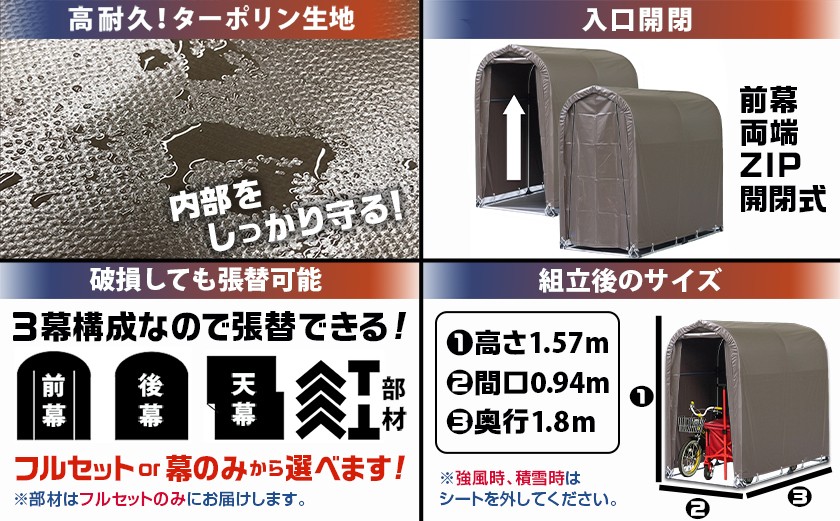 サイクルハウス2台用 SB【巻上げ式】_AI-J403-S2026_(都城市) サイクルハウス 2台用 スーパーブラウン 巻上げ式 組立式 組立説明書付 収納 便利 耐久性 張替用幕 前幕 後幕 天幕 幕取替