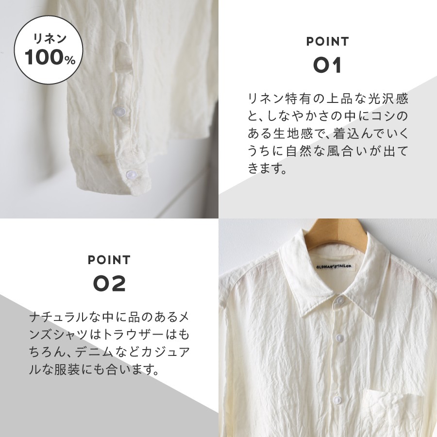 メンズ シャツ 白 【OLDMAN'S TAILOR】LINEN REGULAR COLLAR SHIRT 【選べるサイズ 36サイズ/38サイズ/40サイズ】 長袖 高品質 日本製生地 リネン レギュラーカラー シャツ リネン100% カジュアル 山梨 富士吉田