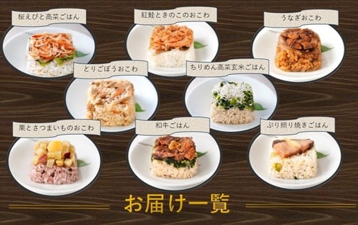 【セット】一膳ごはん8種詰合せ 8種(全8個)(ちりめん高菜玄米ごはん、とりごぼうおこわ、ぶり照焼きごはん、紅鮭ときのこのおこわ、桜えびと高菜ごはん、うなぎおこわ、和牛ごはん、栗とさつまいものおこわ) 各125g/1個(全8個)