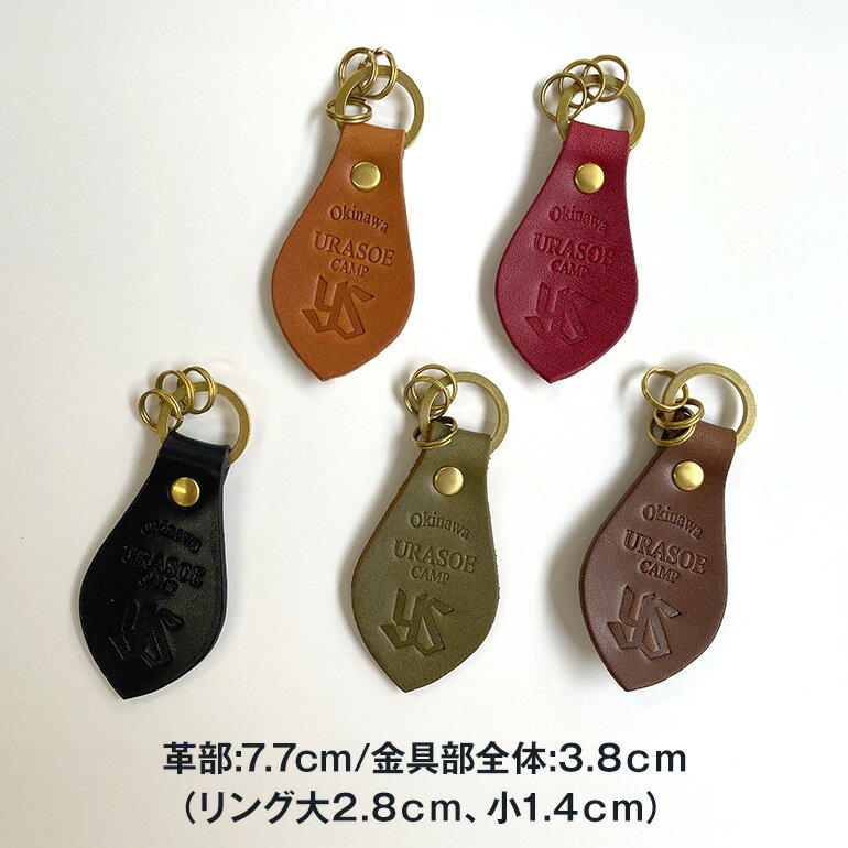 【ふるさと納税】キーホルダー レザー ( 黒 / 赤 / 茶 / 緑 / こげ茶 )( 革部7.7cm 金具部全体:3.8cm(リング大2.8cm、小1.4cm)浦添市限定 ヤクルトスワローズ YSロゴ入り