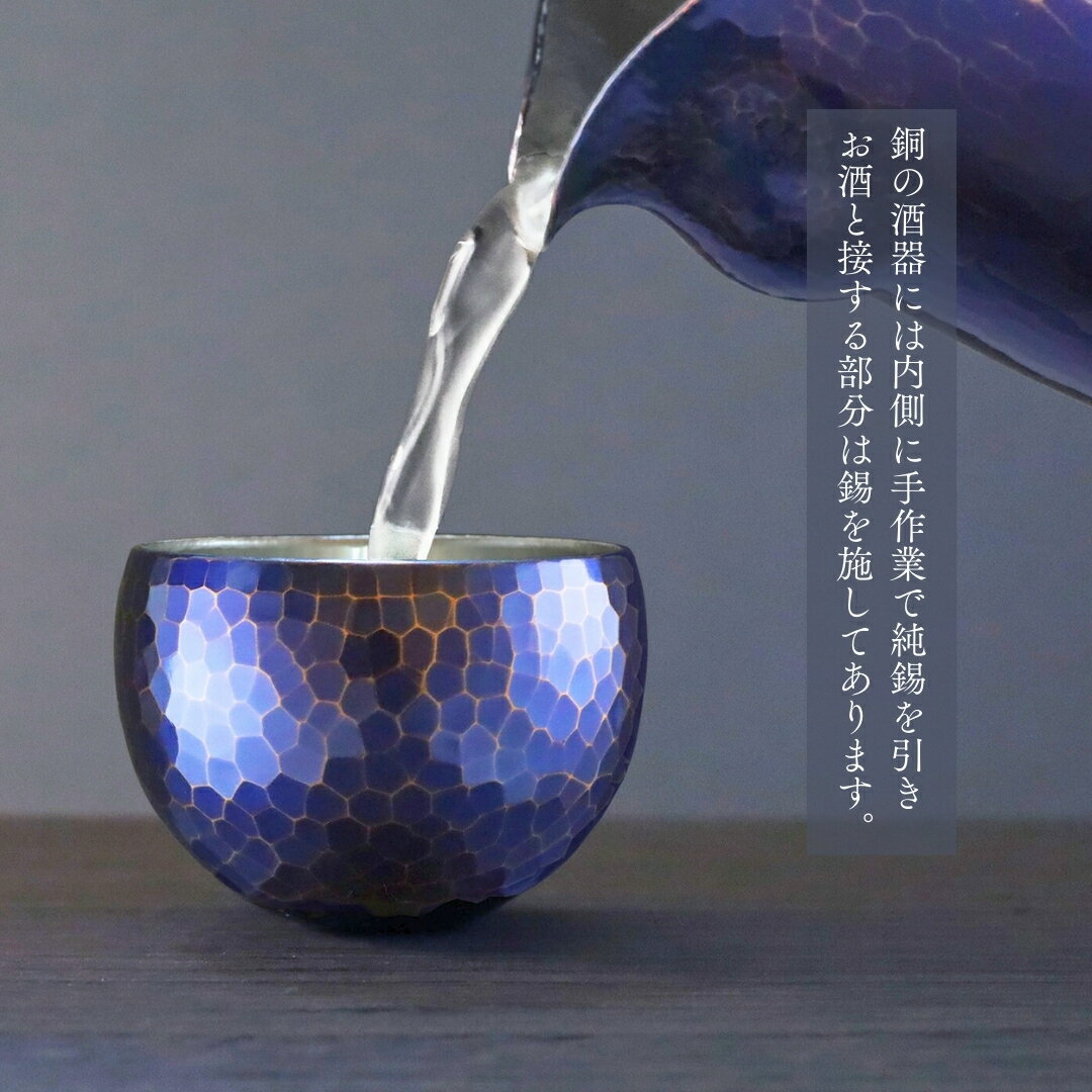 【ふるさと納税】<冷たい口当たり>銅製 青藍色 ぐい呑み | 手作り 伝統 冷酒 日本酒 新潟県 弥彦村 清雅堂