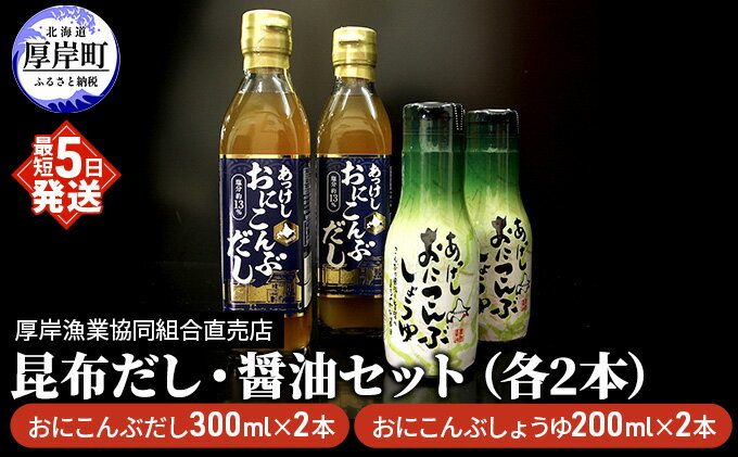 - 【ふるさと納税】昆布だし・醤油セット(各2本) 調味料 詰め合わせ 厚岸産 最高級 おに昆布 加工 製品 味噌汁 鍋 深い 旨味 風味 まろやか お刺身
