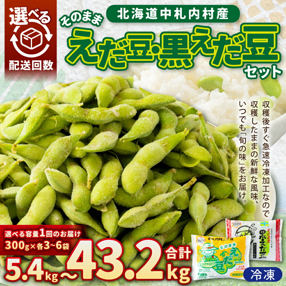 【ふるさと納税】【選べる容量・定期便回数】そのまま枝豆 そのまま黒えだ豆 2種 1回あたり各約300g×3袋/各約300g×6袋 定期便 3回 6回 12回 計約5.4kg~計約43.2kg 枝豆 黒えだ豆 えだまめ 国産 冷凍 北海道 中札内村 送料無料 [018-0056x1]