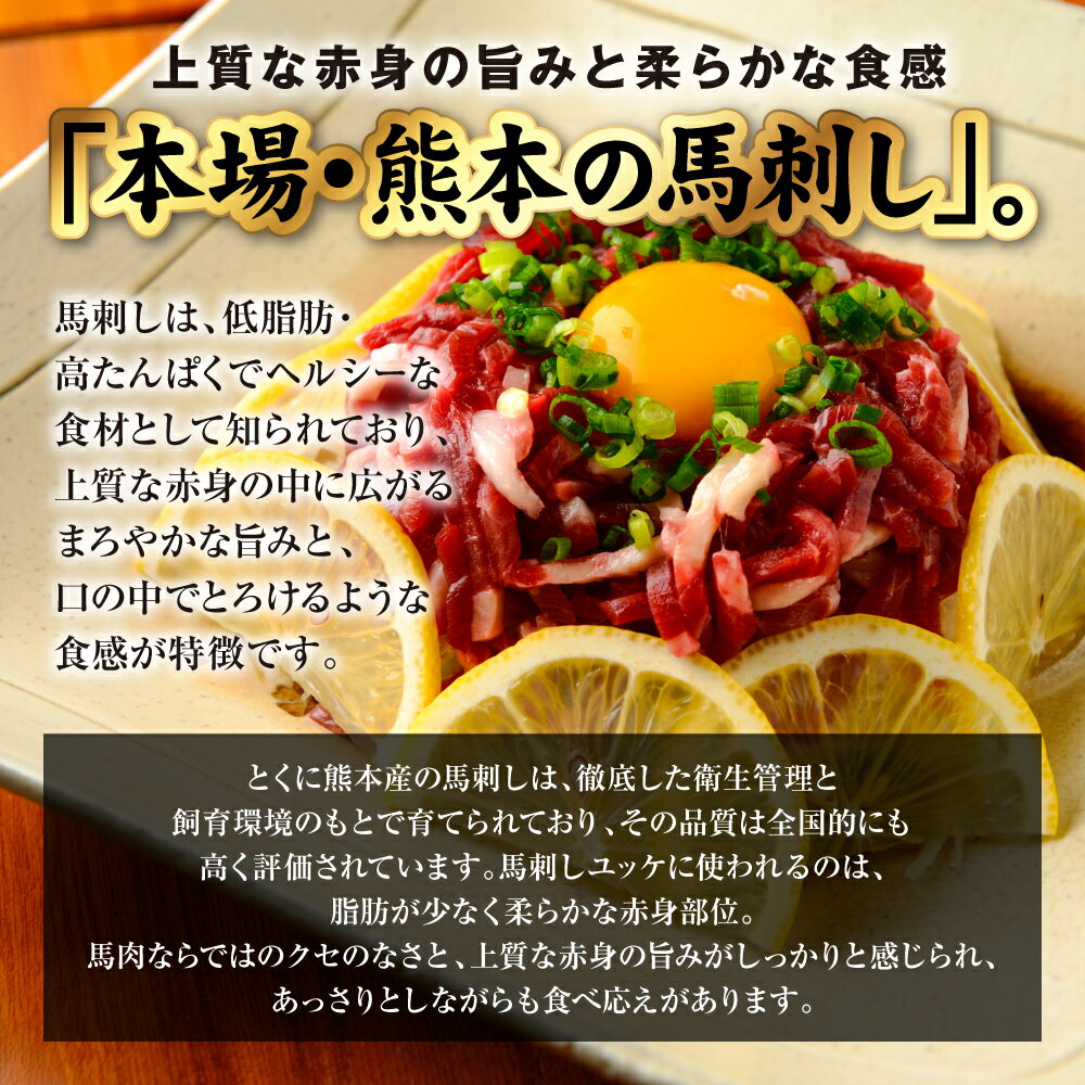 【ふるさと納税】まな板不要 カット済み 希少な 純国産 馬刺し 赤身 と 桜ユッケ セット 約 200g タレ付き 選べる 定期便 回数 3回 6回 12回 | 肉 にく お肉 おにく 馬 馬肉 馬刺 定期 熊本県 玉名市 送料無料
