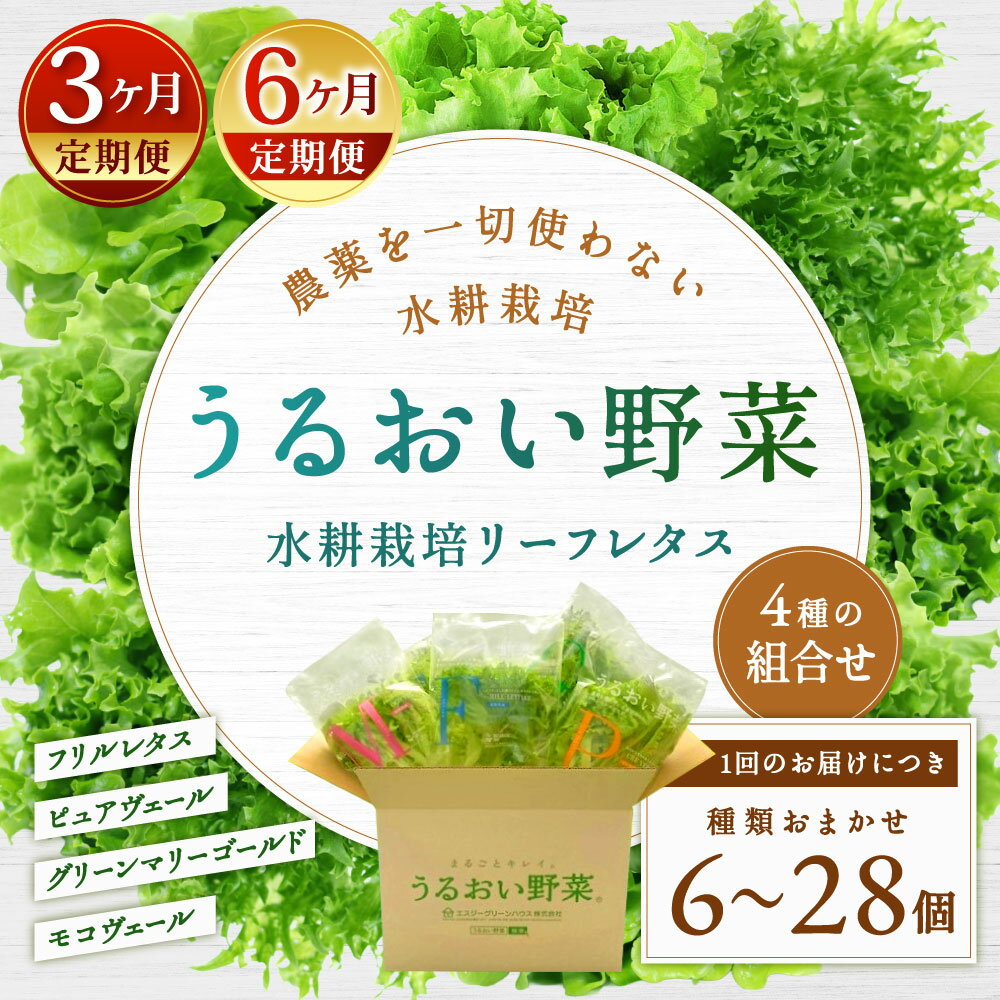 【ふるさと納税】【定期便】水耕栽培 リーフレタス 「うるおい野菜」 4種類 おまかせ 選べる個数 6個セット / 14個セット / 28個セット フリルレタス ピュアヴェール グリーンマリーゴールド モコヴェール 葉野菜 野菜 レタス サラダ 冷蔵 国産 福岡県北九州市