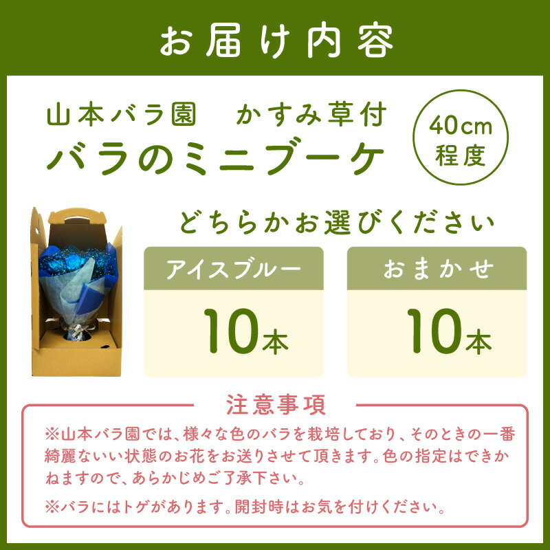 - 【ふるさと納税】花のまちから愛を込めて バラのミニブーケ バラ10本 アイスブルー おまかせ ふるさと納税 花 バラ 薔薇 ミニブーケ かすみ草 ギフト 贈り物