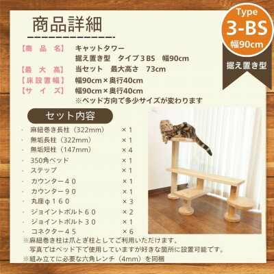 【ふるさと納税】ベンチの様に座って猫と戯れられる据え置き型キャットタワー 選べる幅2種類の幅90cm タイプ3BS【1186746】