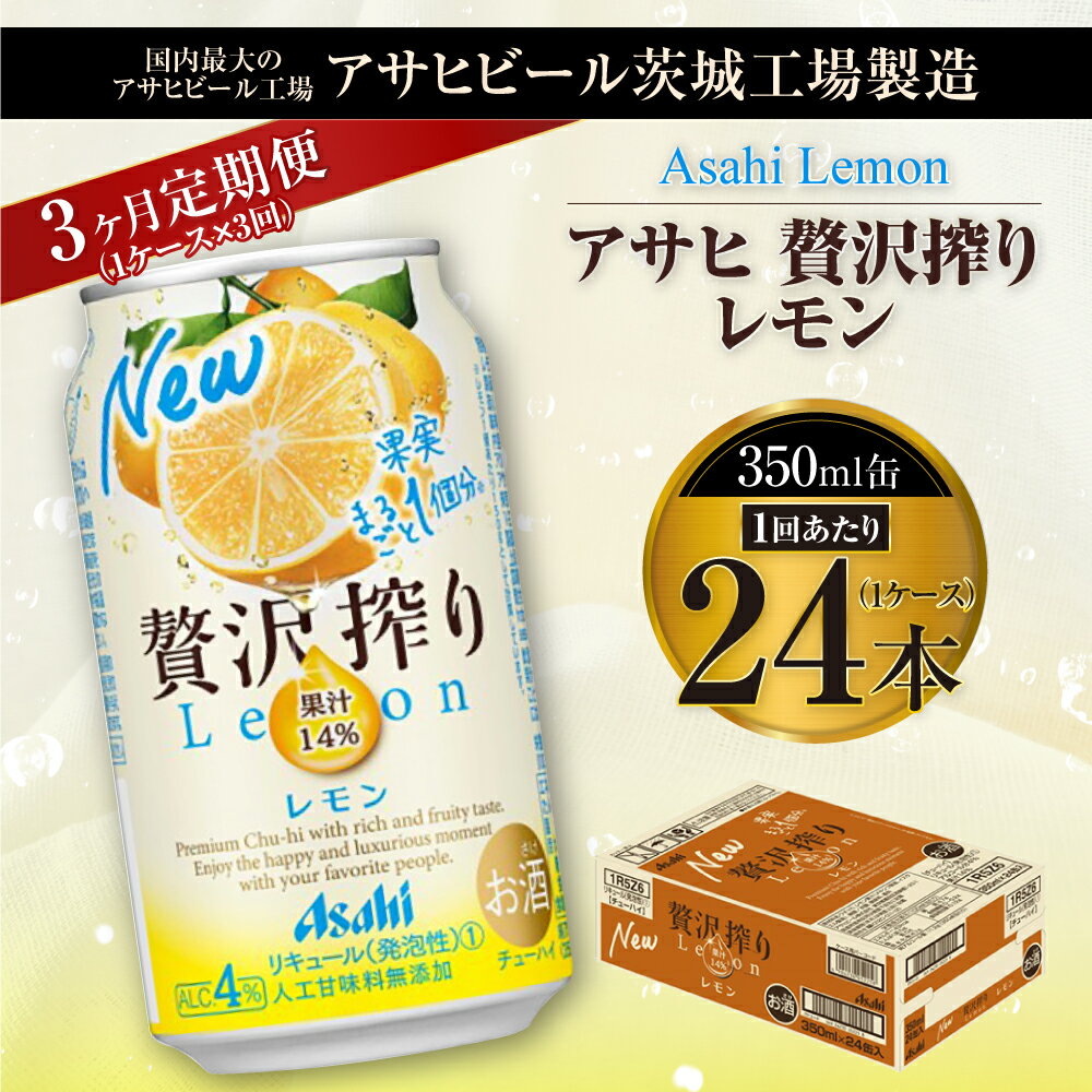 - 【ふるさと納税】【3ヶ月定期便】アサヒ贅沢搾りレモン 350ml缶 24本入 (1ケース) アサヒ チューハイ 贅沢搾り レモン 檸檬 アルコール 度数 4% 定期便 3回 定期配送 茨城県 守谷市 送料無料