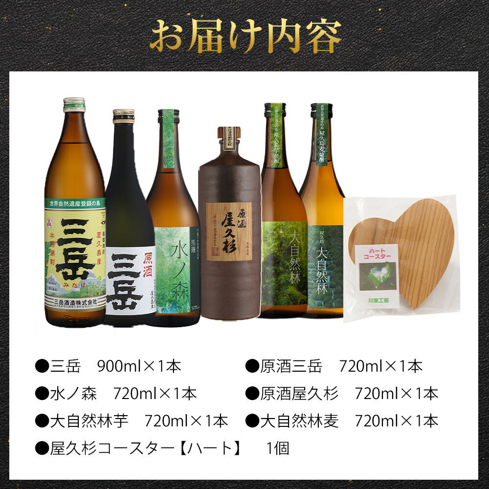 【ふるさと納税】屋久島焼酎飲み比べ 6種・6本セット+屋久杉コースター ハート