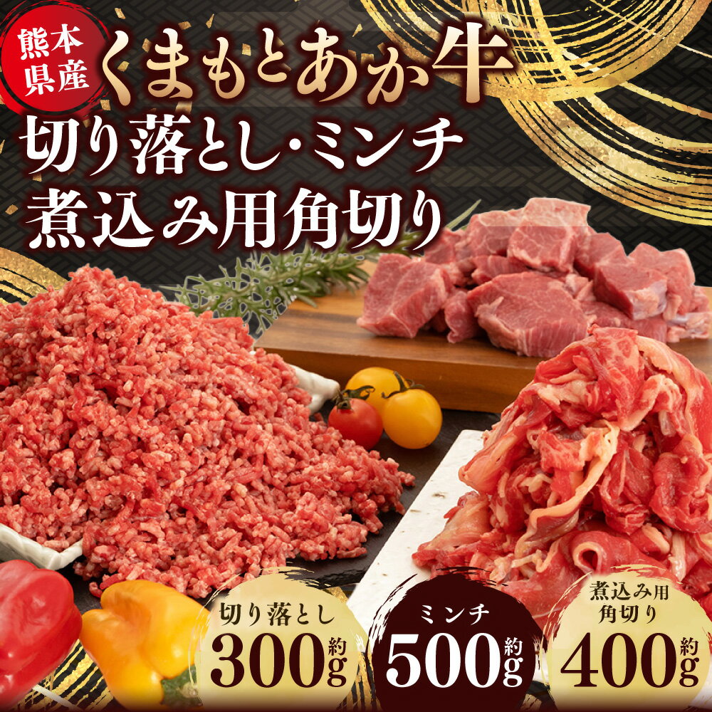 【ふるさと納税】くまもとあか牛 切り落とし(300g) ミンチ(500g) 煮込み用角切り(400g) 合計1.2kg 牛肉 切り落とし ミンチ 煮込み 角切り 霜降り 国産 九州 熊本県 送料無料