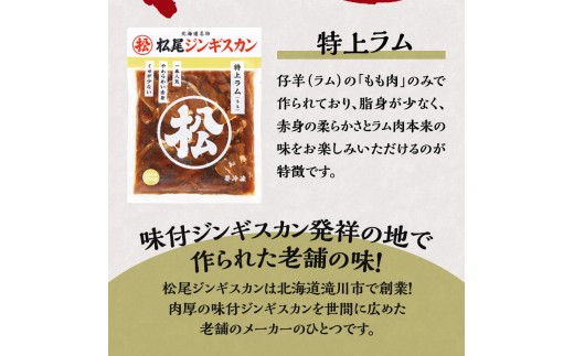 【松尾ジンギスカン】一番人気の特上ラム3パックセット 北海道 滝川 ソウルフード 成吉思汗 BBQ 肉 焼き肉 焼肉 バーべキュー ラム マトン ラム肉 羊 羊肉 ジンギスカン タレ 味付 個包装 冷凍 おすすめ