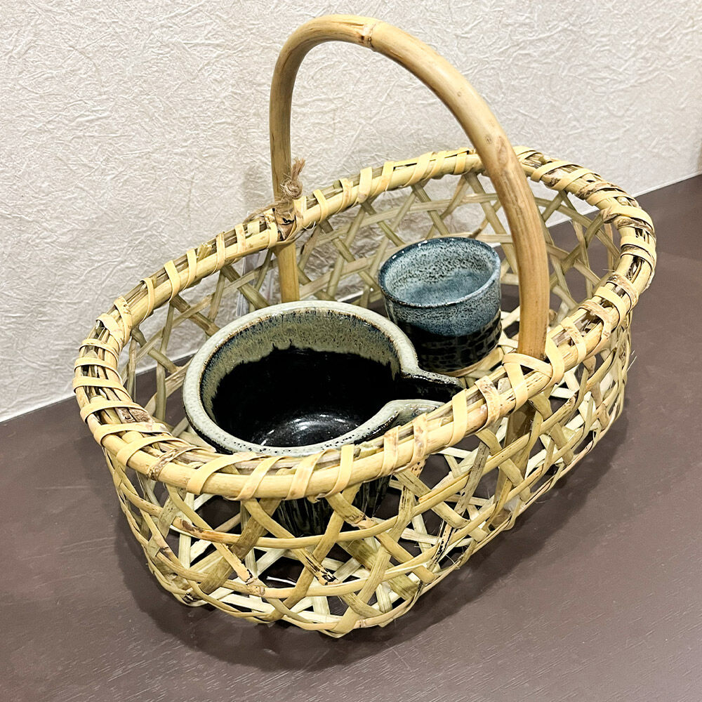 お猪口 片口 竹籠 津軽焼 お猪口・片口と竹籠セット(各1個)工芸品 青森県弘前市 草邑 [お猪口 片口 酒器 竹籠 津軽焼 津軽竹籠 焼き物 竹細工 工芸品 贅沢な時間 素朴 温かみ 美しい 青森県 弘前市 力強い 生活に溶け込む 手仕事]
