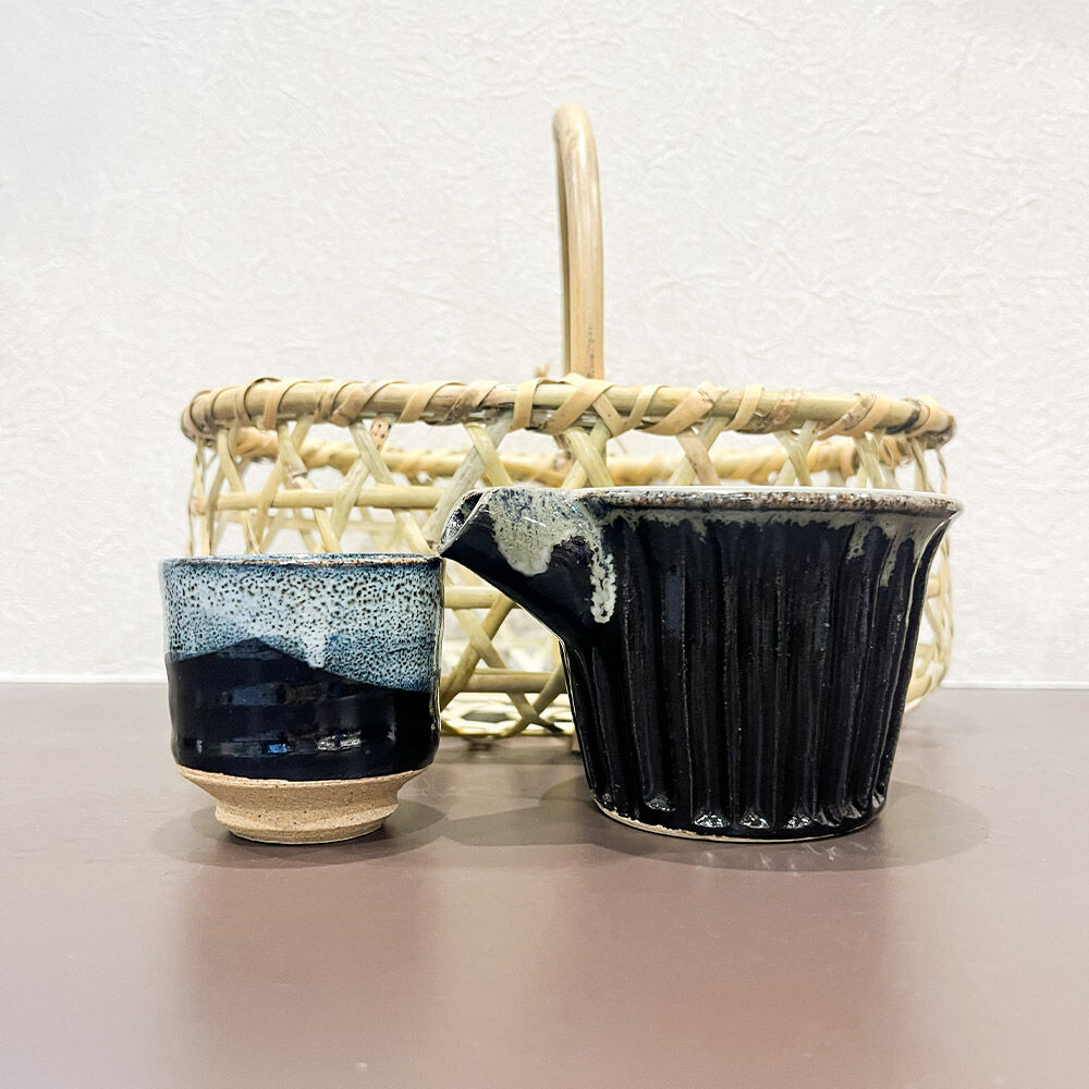 - お猪口 片口 竹籠 津軽焼 お猪口・片口と竹籠セット(各1個)工芸品 青森県弘前市 草邑 [お猪口 片口 酒器 竹籠 津軽焼 津軽竹籠 焼き物 竹細工 工芸品 贅沢な時間 素朴 温かみ 美しい 青森県 弘前市 力強い 生活に溶け込む 手仕事]