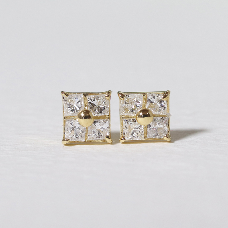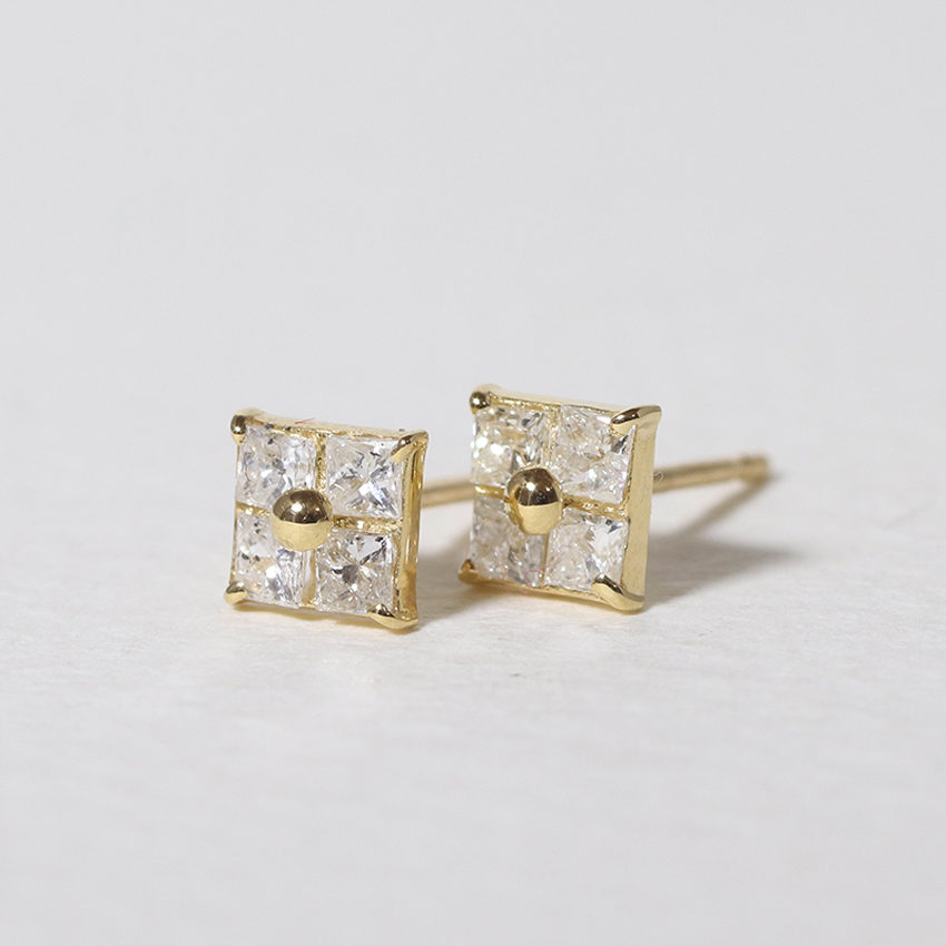 K18 スクエアダイヤモンドピアス(四角)BQ-127