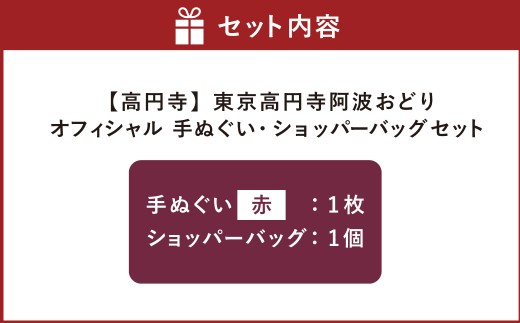 【 高円寺 】 東京高円寺阿波おどりオフィシャル 手ぬぐい ( 赤 )・ 東京高円寺阿波おどりオフィシャル ショッパーバッグ セット 【2025年版】 描き下ろし 書き下ろし 限定デザイン アートワーク オリジナルグッズ