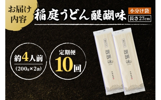《定期便10ヶ月》稲庭うどん 醍醐味 27cm 200g×2袋 計400g 4人前 ゆうパケット [稲庭うどん いなにわうどん 手綯うどん うどん 乾麺 秋田 保存食 長期保存 家庭用 27cm ゆうパケット]