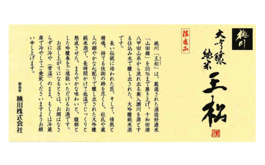 日本酒 純米大吟醸 王松 1800ml 桐箱入 [桃川 青森県 おいらせ町 oi02ayo580005] 1.8L 酒 お酒 山田錦 中口 淡麗 純米酒