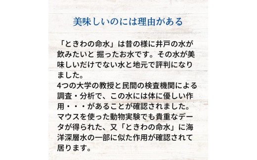 水 ミネラルウォーター 市場の目利きが選ぶ名産品『ときわの命水』 2L×6本 | 飲料 水 ミネラルウォーター 南アルプス 地下100m 汲み上げ モンドセレクション iTQi 受賞 伊那市 長野県【011-a5】