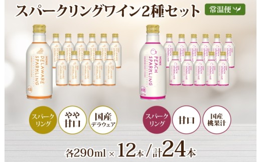 デラウェアスパークリング ピーチスパークリング 2種 各290ml×12本 計24本入 モンデ酒造 缶ワイン フルーツワイン スパークリング ワイン 果汁 果実酒 酒 お酒 晩酌 宅飲み キャンプ パーティー 甘口 桃 もも やや甘口 デラウェア ぶどう 送料無料 山梨県 177-4-166