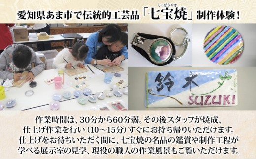 - 七宝焼制作 体験チケット 1,500円分 アクセサリー作り ペンダント 30〜60分 釉薬 カジュアル 七宝焼 雑貨 アクセサリー ワークショップ 伝統工芸 送料無料 尾張七宝協同組合 愛知県 あま市