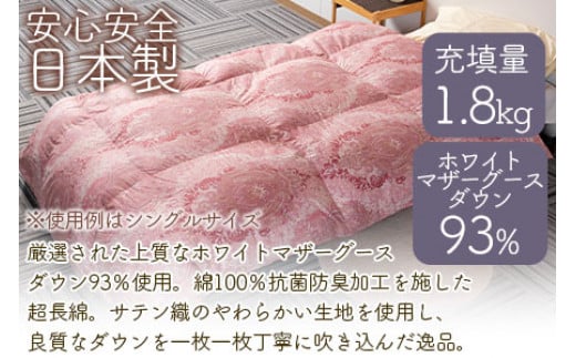 - <羽毛掛ふとん ダブルサイズ 暖色限定 ホワイトマザーグースダウン93% フェザー7% 充填量 1.8kg> ダウンパワー400dp以上 ツインキルト 二層キルト 防寒 柄お任せ 新生活 贈り物 寝具 暖かい 布団【MI223-bs】【株式会社ベストライフ】