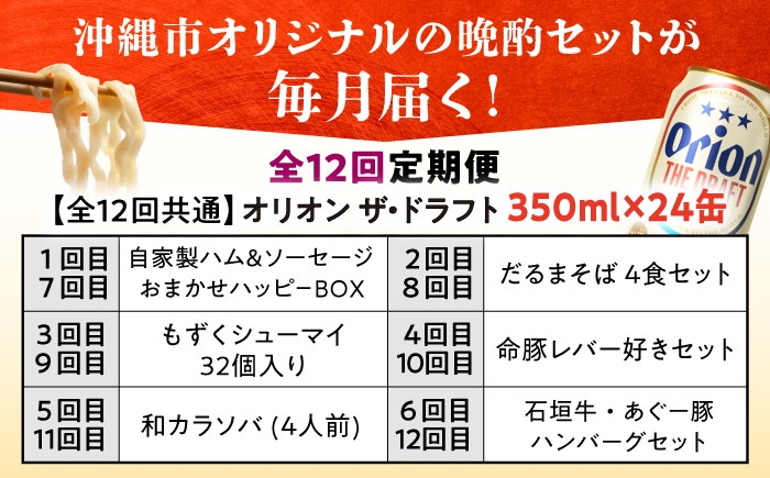 - オリオンビール 晩酌セット 【全12回定期便】 沖縄市 TESIO だるまそば 豚々茶舗 DELICATESSEN NUCHIBUTA みやんちSTUDIO&COFFEE お肉屋本店 リカーショップコザ [BCZZ038] ビール 沖縄そば 焼売 レバー パテ おきなわそば 石垣牛 あぐー豚 ハンバーグ はんばーぐ ハム ソーセージ はむ そーせーじ びーる 晩酌 オリオンビール 沖縄県 沖縄市