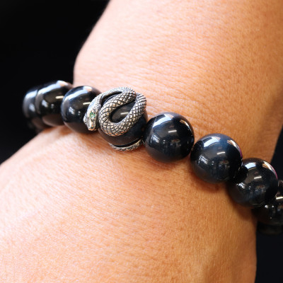 - <和の彩 wanoiro>白蛇ブルータイガーアイ ブレスレット 659-931【1534398】