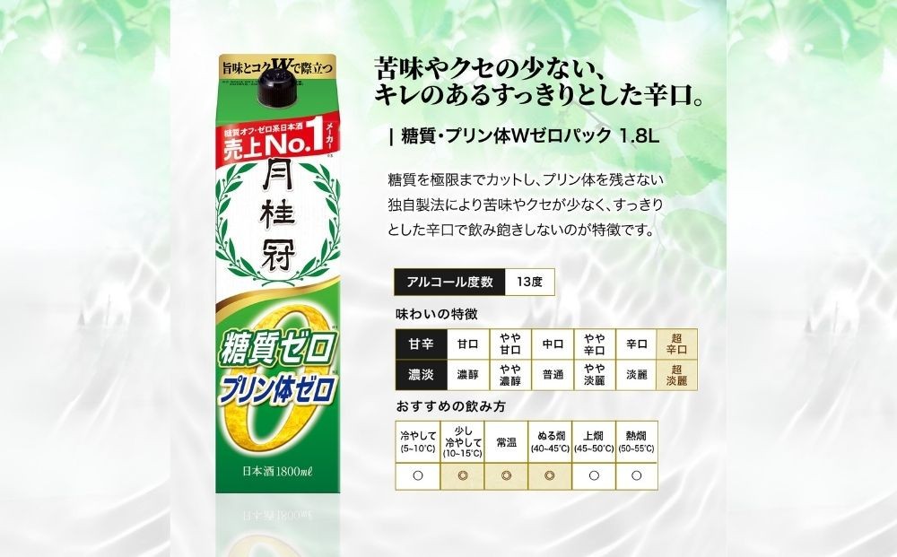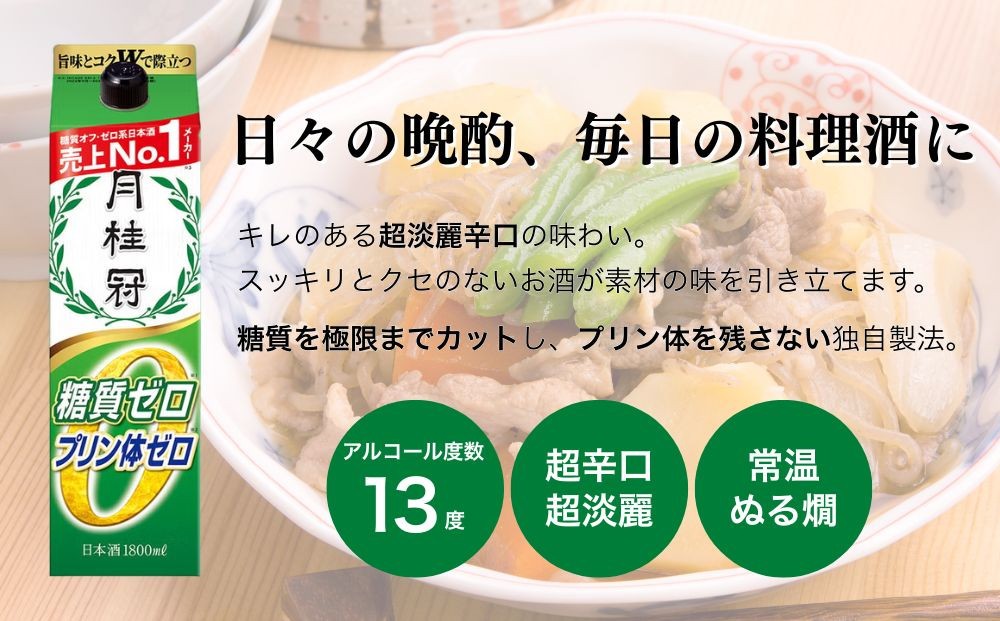 - 【月桂冠】糖質・プリン体Wゼロのお酒1.8L×6本[ 健康志向の方向け 日本酒 大容量 辛口 すっきり 食事に合う アレンジ色々 日常使い 晩酌 宅飲み お酒 清酒 料理酒にも お取り寄せ 通販 送料無料 ふるさと納税 ]