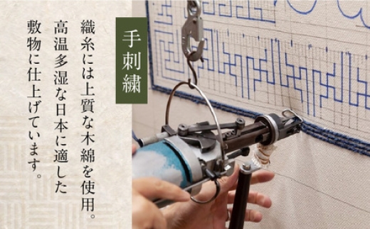 - 【手刺繍】蟹牡丹縁二重雷文/灰地 約70×120cm / 鍋島緞通吉島家 [41AAAM046]