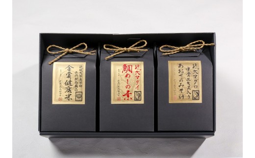 - 近大は美味しい 近大の馳走詰合せ (鯛めし、あおさのみそ汁、金賞健康米の3種セット) 鯛 タイ たい 真鯛 味噌汁 みそ汁 あおさ 金賞健康米 米 こめ ギフト【akd009】
