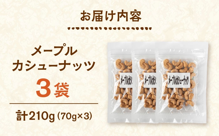 メープルカシューナッツ 70g×3袋 ▼ カシューナッツ ナッツ 便利 保存 常温 ふるさと納税 おやつ おつまみ お取り寄せ 送料無料 桂川町/株式会社福六 [ADAM074]