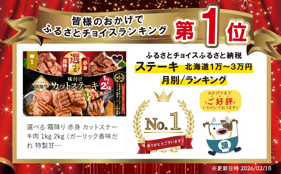 - 御礼!ランキング第1位獲得!選べる 霜降り 赤身 カットステーキ肉 1kg 2kg (ガーリック香味だれ 特製甘だれ)( ステーキ ステーキ肉 ステーキ 赤身 サイコロステーキ サイコロステーキ 牛肉 サイコロステーキ 赤身肉 サイコロステーキ 1kg サイコロ 牛肉 ステーキ 牛肉 焼肉 焼き肉用 牛肉 小分け 北海道 別海町 )