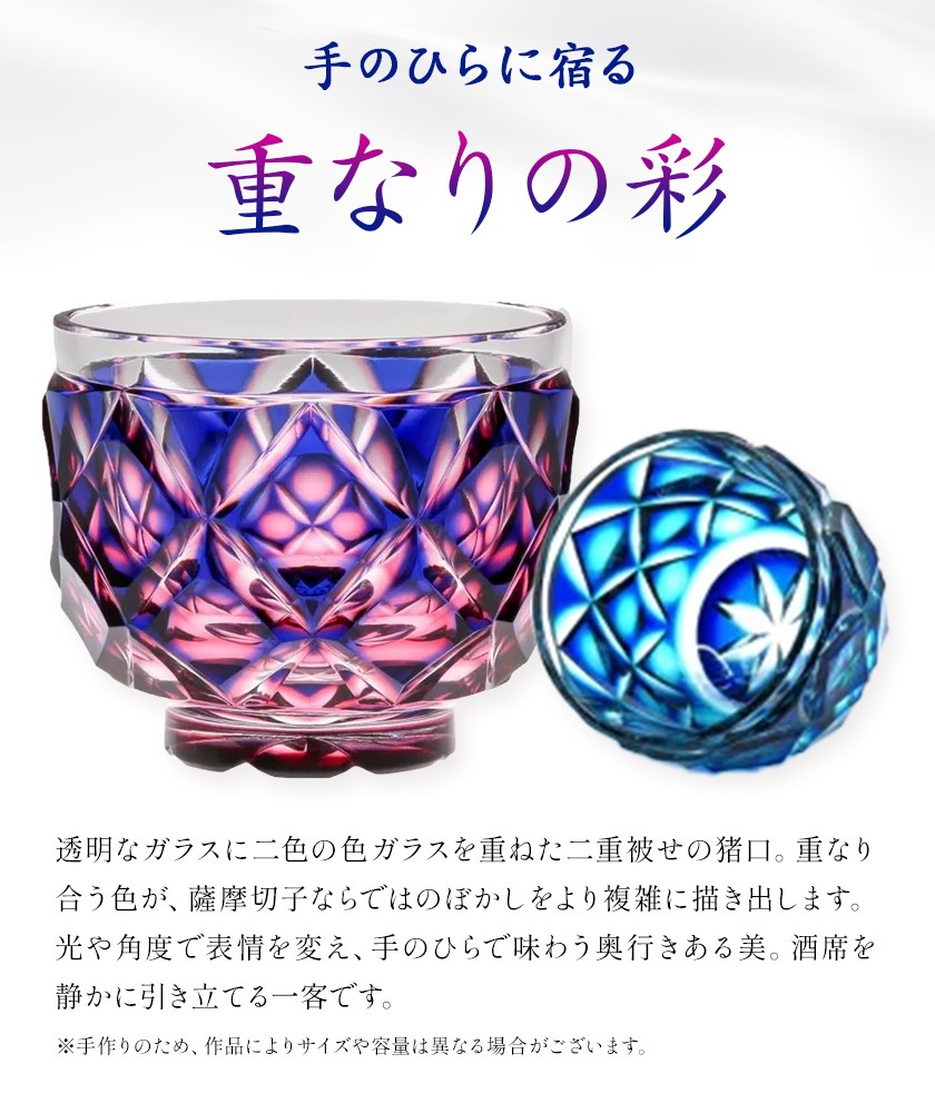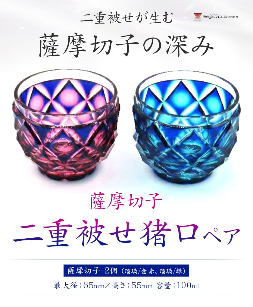 薩摩切子 二重被せ 猪口 ペア セット グラス ガラス おちょこ 瑠璃/赤金 瑠璃/緑 最大径65mm×高さ55mm 容量100ml 薩摩びーどろ工芸株式会社《90日以内に出荷予定(土日祝除く)》鹿児島県 さつま町 送料無料 伝統工芸品 切子 コップ 食器
